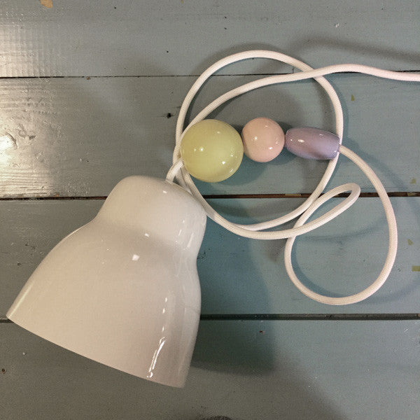 Der medfølger tre porcelænsperler som på billedet. Ønsker du andre perler, er du velkommen til at komme forbi vores værksted og købe/vælge andre perler.